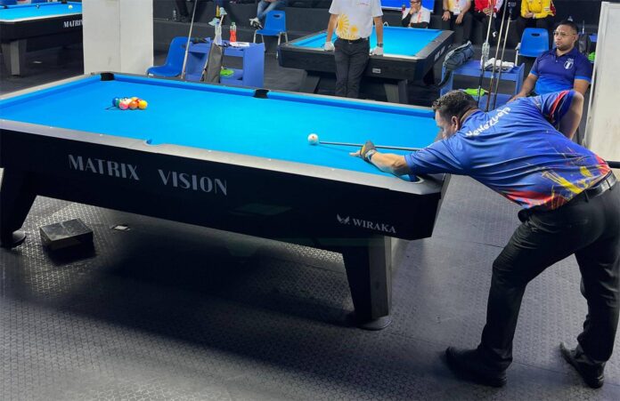 El duelo contra la pareja local de Gerson Martínez, campeón en individual en Bola 9, y Cristopher Tévez se mantuvo pareja 5-5 durante los primeras diez partidas, pero los venezolanos aprovecharon un disparo fallido de los peruanos para adueñarse del sexto punto.