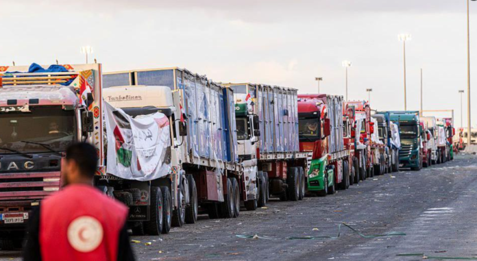 Cientos de camiones con ayuda humanitaria comenzaron a entrar este domingo en la Franja de Gaza desde Egipto de acuerdo al plan de alto al fuego entre Israel y Hamás, alcanzado el jueves pasado. Largas colas de camiones con ayuda se encuentran también en la zona fronteriza de Rafah, a la espera de entrar en la Franja a través de los cruces de Kerem Shalom y al Awja, controlados por Israel, informó el canal de televisión egipcio Al Qahera News.