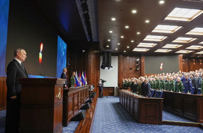 Dirigiéndose a los altos mandos militares rusos, Putin también elogió al Ejército ruso y destacó especialmente la modernización de su arsenal nuclear, afirmando que ningún otro país puede competir con él.
