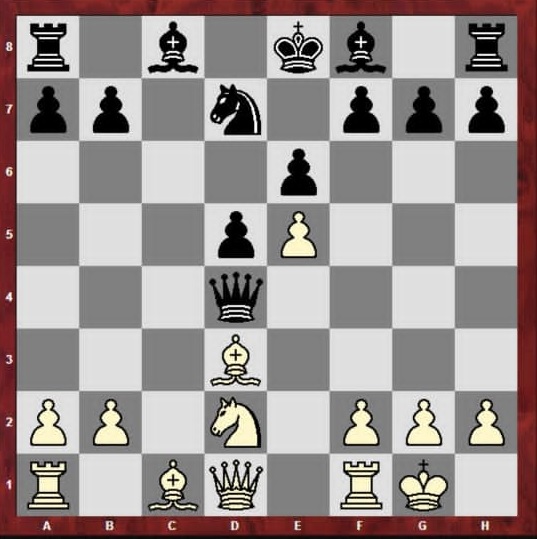 1 e4 e6 2 d4 d5 3 Cd2 Cf6 4 e5 Cfd7 5 Ad3 c5 6 c3 Cc6 7 Cgf3 Db6 8 0-0 cxd4 9 cxd4 Cxd4 10 Cxd4 Dxd4 11 Cf3 Db6 12 Da4 Db4 13 Dc2 Dc5 14 Dd2 Ae7 15 Df4 f6 16 Dg4 fxe5 17 Dxg7 Af6 18 Dg4 De7 19 Cg5 Axg5 20 Axg5 Df7 21 Tac1 h6 22 Ah4 e4 23 Tc7 Df5 24 Dxf5 exf5 25 Ab5 a6 26 Tfc1 axb5 27 Txc8 Rf7 28 T8c7 Re6 29 Txb7 Thc8 30 Td1 Tab8 31 Txb8 Cxb8 32 Ag3 Ca6 33 Af4 h5 34 f3 Cb4 35 fxe4 fxe4 36 h3 Tc2 37 Td2 Rf5.