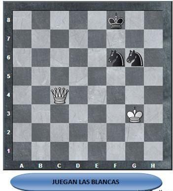 Recuerden que los caballos son las piezas que más sorpresa causan en el tablero por su fuerza de ataque doble, así que acercar al rey y la dama contra la «pareja de caballos» es como jugar en un campo minado, en donde un desliz del bando fuerte puede perder la dama rápidamente.