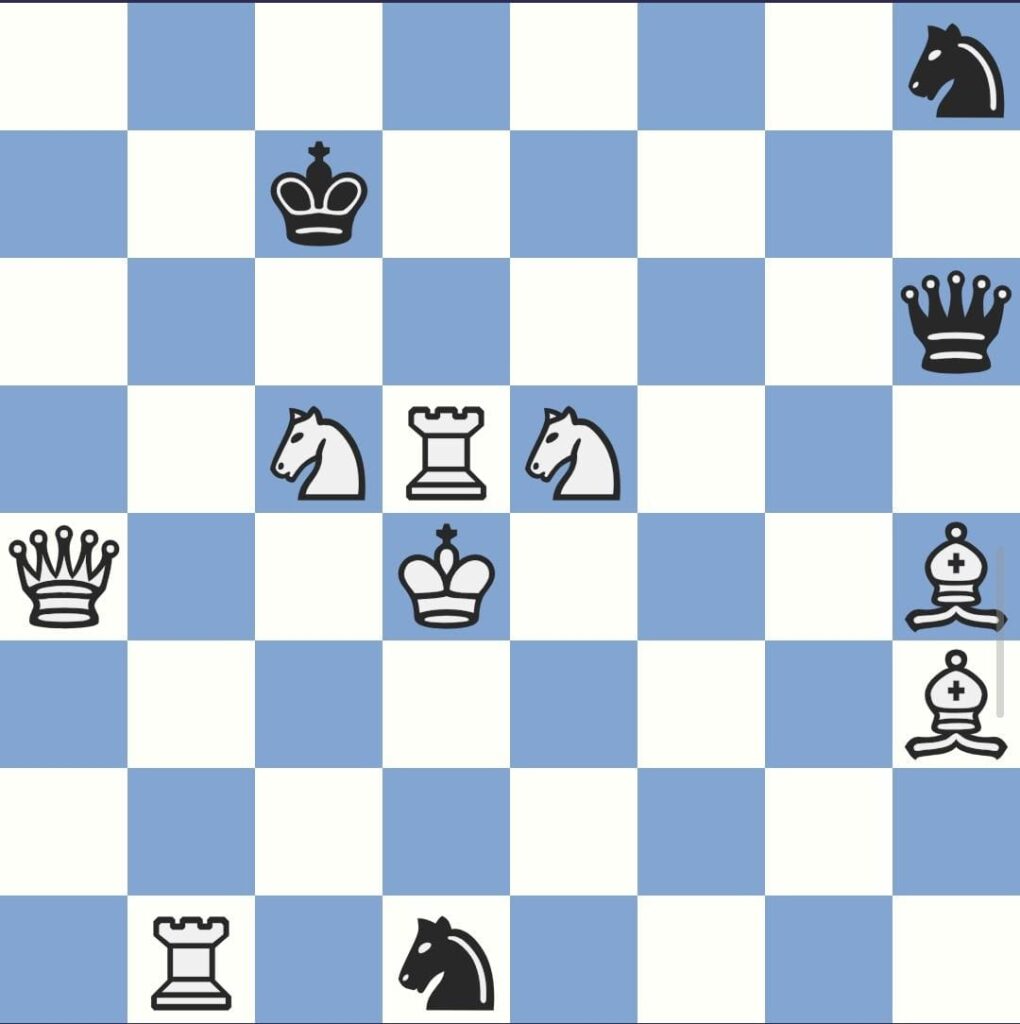 6… Rxf7 7 Df3+ Re6 8 Cc3 Ce7 9 d4 c6 10 Ag5 h6 11 Axe7 Axe7 12 0-0-0 Tf8 13 De4 Txf2 14 dxe5 Ag5+ 15 Rb1 Td2 16 h4 Txd1+ 17 Txd1 Axh4 18 Cxd5 cxd5 19 Txd5 Dg5 20 Td6+ Re7 21 Tg6 abandonan… Composición de ejercicio Garry Valera.