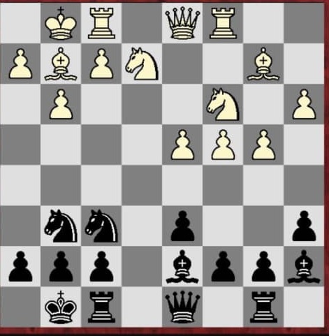 Blancas- Negras: MI Eduardo Iturrizaga- Marcos Hernández: 1c4 e5 2 Cc3 Cf6 3 g3 Cc6 4 Ag2 Ab4 5 d3 d6 6 e3 0-0 7 Ce2 a6 8 0-0 Ad7 9 a3 Ac5 10 b4 Aa7 11 Ab2 Tb8 12 Tc1 Ce7 13 d4 exd4 14 exd4 Cg6 15 Dc2 Te8 16 Tfd1 Ag4 17 h3 Axe2 18 Cxe2 c6 19 Cc3 Tc8 20 Ce4 Cxe4 21 Axe4 d5 22 Ag2 Ab8 23 cxd5 cxd5 24 Dxc8 Dxc8 25 Txc8 Txc8 26 Axd5 Tc2 27 Tc1 Txc1 28 Axc1 b6 29 Rf1 Rf8 30 Re2 Ce7 31 Ab7 a5 32 Rd3 axb4 33 axb4 Cf5 34 g4 Cd6 35 Ac6 Re7 36 Af4 Aa7 37 f3 f6 38 h4 b5 39 Axd6 Rxd6 40 Axb5 Rd5 41 Ac4+ Rc6 42 Re4 h6 43 b5+ Rd6 44 f4 Rd7 45 Rd5 las negras abandonan….