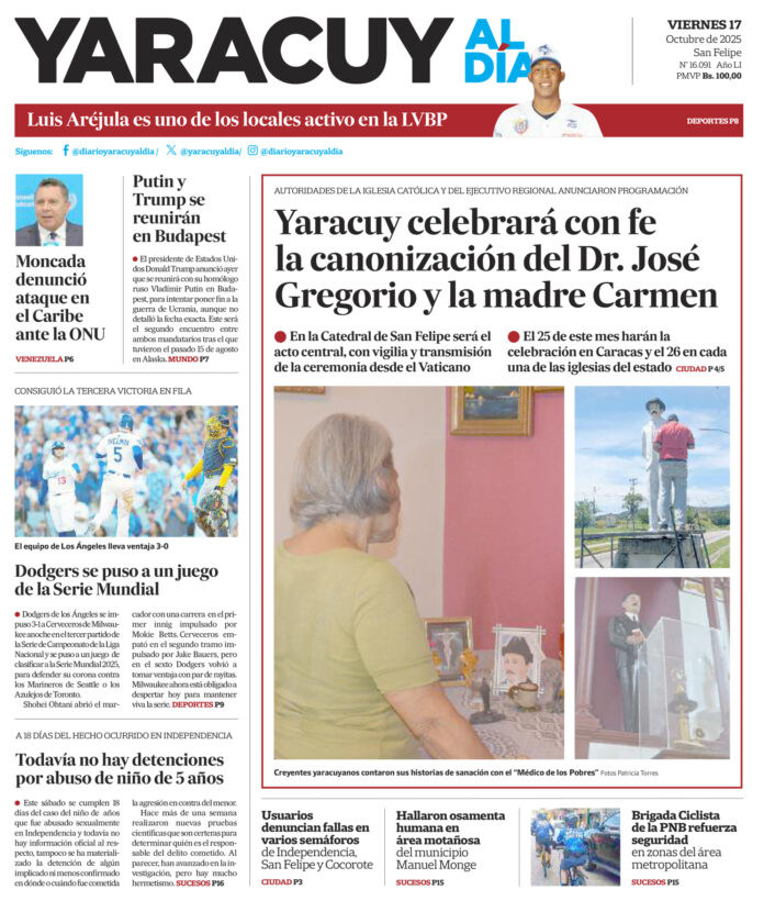 InicioPortadaPortada 17 de octubre Portada Portada 17 de octubre Por Redacción 17 de octubre de 2025 Compartir FacebookTwitterWhatsApp - Publicidad - Compartir FacebookTwitterWhatsApp Artículo anteriorCabello juramentó milicia campesina en La GuairaArtículo siguienteAfinan detalles en la Plaza de San Pedro para la canonización de santos: ya están visibles los tapices de José Gregorio Hernández y Carmen Rendiles +Video ARTÍCULOS RELACIONADOS Portada Portada 24 de octubre 24 de octubre de 2025 Portada Portada 23 de octubre 23 de octubre de 2025 Portada Portada 22 de octubre 22 de octubre de 2025 Portada Portada 21 de octubre 21 de octubre de 2025 Portada Portada 20 de octubre 20 de octubre de 2025 Portada Portada 16 de octubre 16 de octubre de 2025 Últimas entradas Orquesta Sinfónica de Venezuela celebra su 95 aniversario con concierto de la serie “Lo Nuestro” 24 de octubre de 2025 Cocoroteñas se sumaron a jornadas para concientizar sobre el Cáncer de Mama 24 de octubre de 2025 Comisión educativa inició debates sobre los efectos de las tareas escolares 24 de octubre de 2025 Zulianos celebrarán este sábado la bajada de la virgen de Chiquinquirá 24 de octubre de 2025 Cargar más lo más leído Mujer detenida en Páez hace 9 días es una de las 25 personas arrestadas por ser promotoras del dólar no oficial 31 de mayo de 2025 ¡PSG gana su primera ‘orejona’ y hace historia! Golea 5-0 al Inter 31 de mayo de 2025 Fiscales que fueron destituidos del MP entregarán escrito ante el Departamento de RR HH en Caracas 7 de julio de 2025 Alias «El Niño» fue detenido en Veroes con droga y un arma de fuego, era investigado por comisión de inteligencia de la PNB 7 de julio de 2025 Cargar más TE PUEDE INTERESAR Nueva Zelanda inicia debate para restringir las redes sociales a menores de 16 años 24 de octubre de 2025 Orquesta Sinfónica de Venezuela celebra su 95 aniversario con concierto de la serie “Lo Nuestro” 24 de octubre de 2025 Cocoroteñas se sumaron a jornadas para concientizar sobre el Cáncer de Mama 24 de octubre de 2025 Comisión educativa inició debates sobre los efectos de las tareas escolares 24 de octubre de 2025 Cargar más