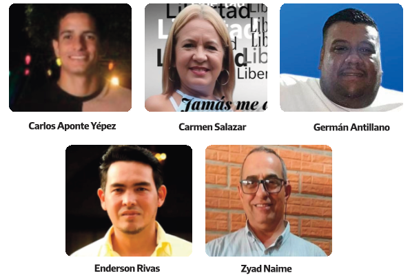 Se trata de Carmen Salazar, quien era secretaria política de Vente en Bruzual, el dirigente de Voluntad Popular Enderson Rivas, así como el coordinador municipal de Vente en Urachiche Zyad Nailos. También están los primos Germán Antillano y Carlos Aponte, ellos son sobrino e hijo de la dirigente Judith Yépez.