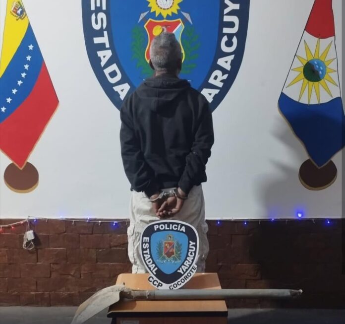 Funcionarios del Centro de Coordinación Policial (CCP) Cocorote detuvieron a un hombre de 60 años por, presuntamente, agredir a otra persona con una pala, el hecho ocurrió en el sector Las Tejitas, municipio Cocorote.
