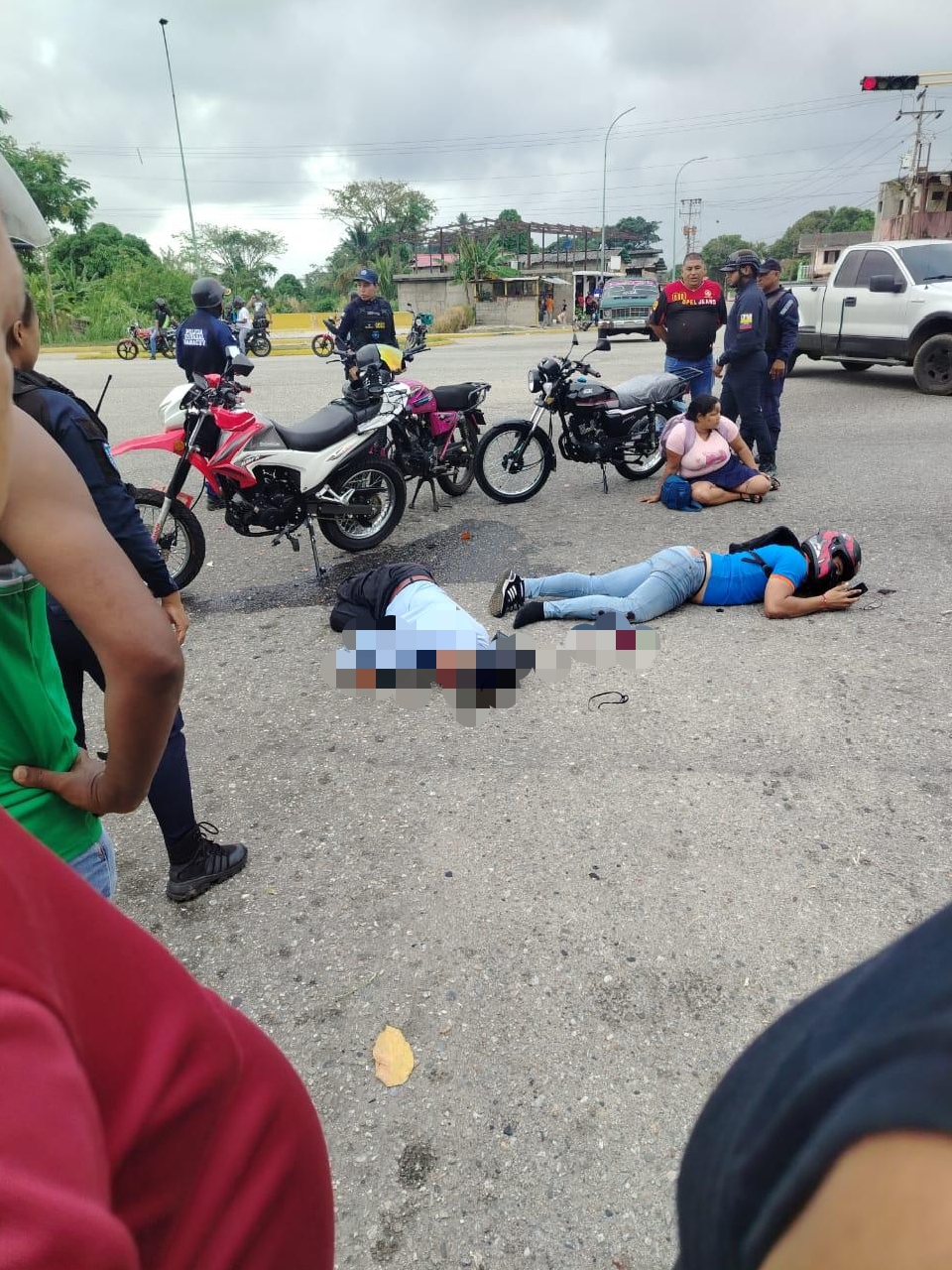 Funcionarios de la DIATT realizan la investigación que corresponde en el nuevo accidente ocurrido en Yaracuy, aunque apuntan que la imprudencia fue por parte de Arellano, quien atravesó la vía sin tomar previsiones cuando conducía la moto Haojín Lechuza, color rojo, placa AK0A66K, en compañía de Benavides.