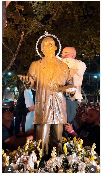 Videos publicados en las redes sociales registraron el momento en el que el sacerdote le coloca la aureola a la estatua de José Gregorio Hernández durante la vigilia celebrada mientras el papa León XIV oficiaba la misa de canonización en el Vaticano. Allí también se elevó a los altares a la madre Carmen Rendiles, la primera santa venezolana.