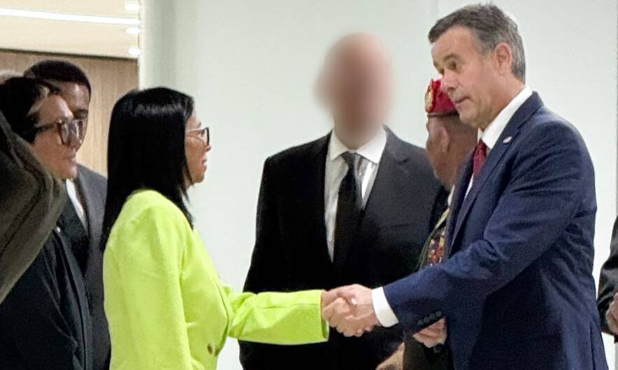 En la foto se observa a Rodríguez tomándose de la mano con Ratcliffe, funcionario estadounidense de mayor rango y el primer miembro del gabinete en viajar al país luego de los hechos del pasado sábado 3.