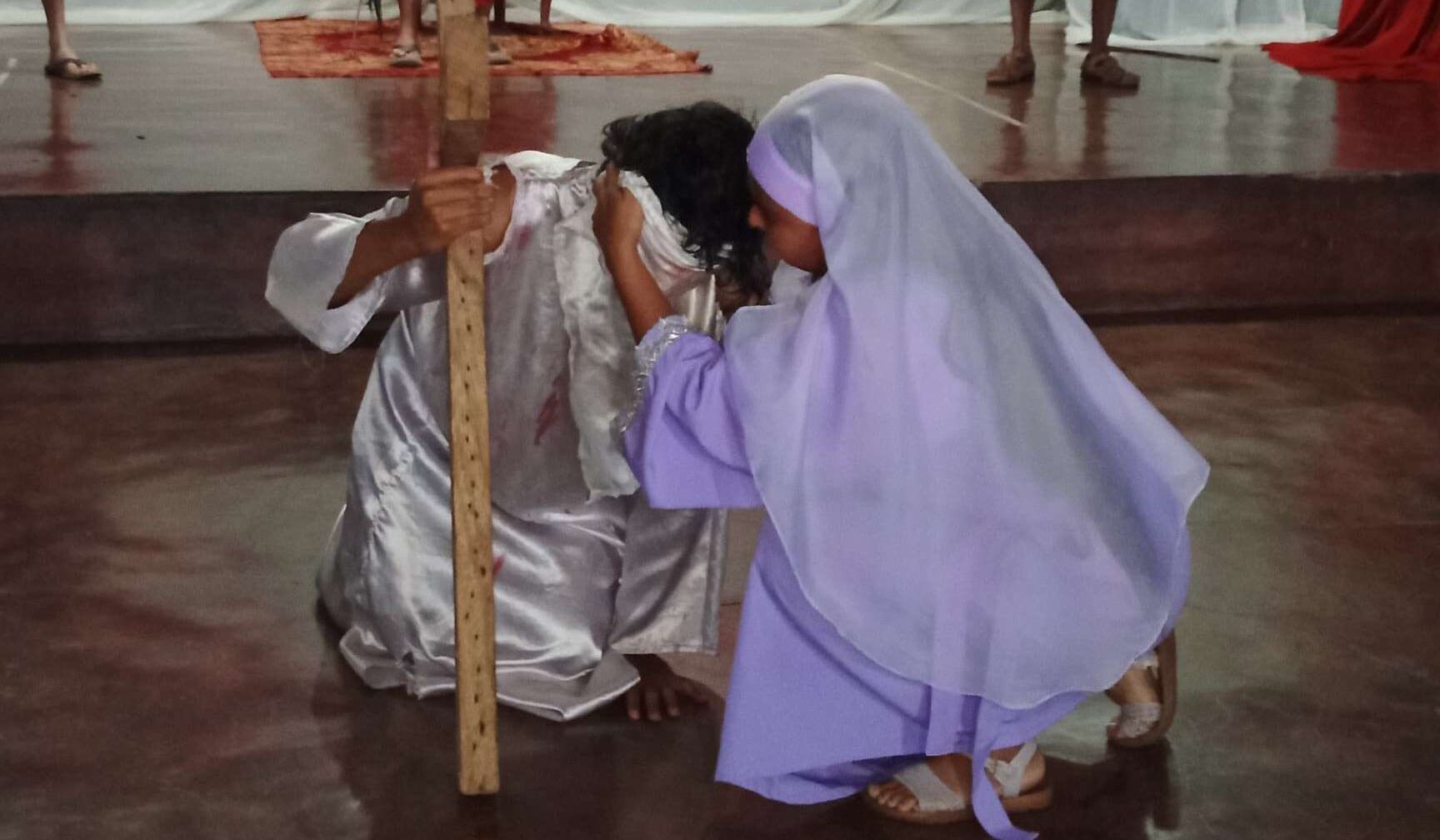 Durante este encuentro con los medios de comunicación realizaron una muestra del Viacrucis que presentarán los niños y niñas que se han sumado a esta agrupación cultural.