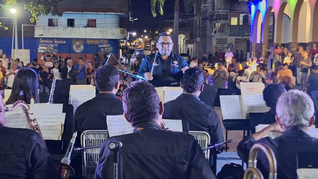 La Filarmónica de Yaracuy, junto al ensamble tradicional Icey, sorprendieron a los sanfelipeños en la Plaza Bolívar con un emotivo concierto navideño dirigido por el maestro Ramón Rodríguez que incluyó temas del cancionero tradicional venezolano y otros de compositores locales, orquestados para la ocasión por el maestro Eduardo Fiallo.