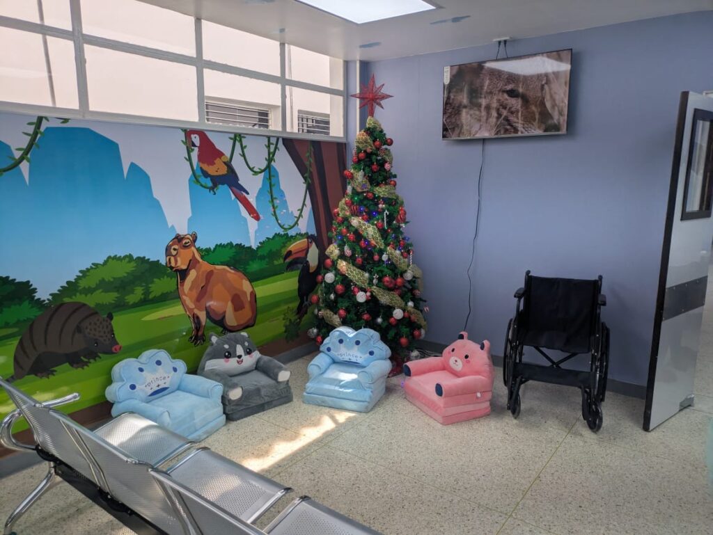 El área de pediatría tiene además termoterapia, duchas pediátricas, baños acorde a la edad de los niños y un área de juegos y recreación para los pequeños pacientes.