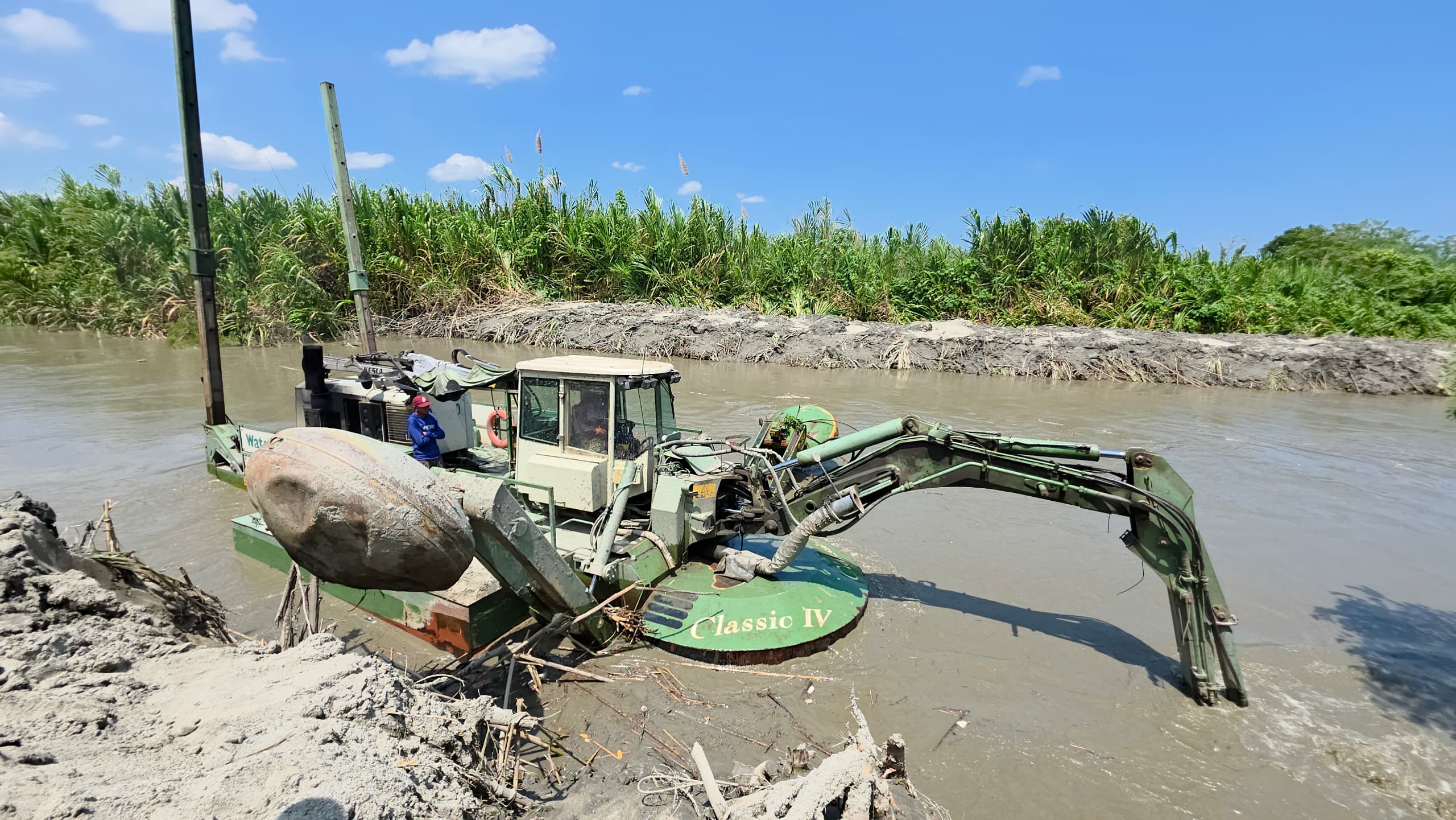 Indicó que están empleando una draga cuya para retirar todo el sedimento del río para poder encauzar todo el caudal y poder darle dirección. «Utilizarán una máquina tipo jumbo para las labores de canalización, remoción de sedimentos y control del cauce fluvial», puntualizó.
