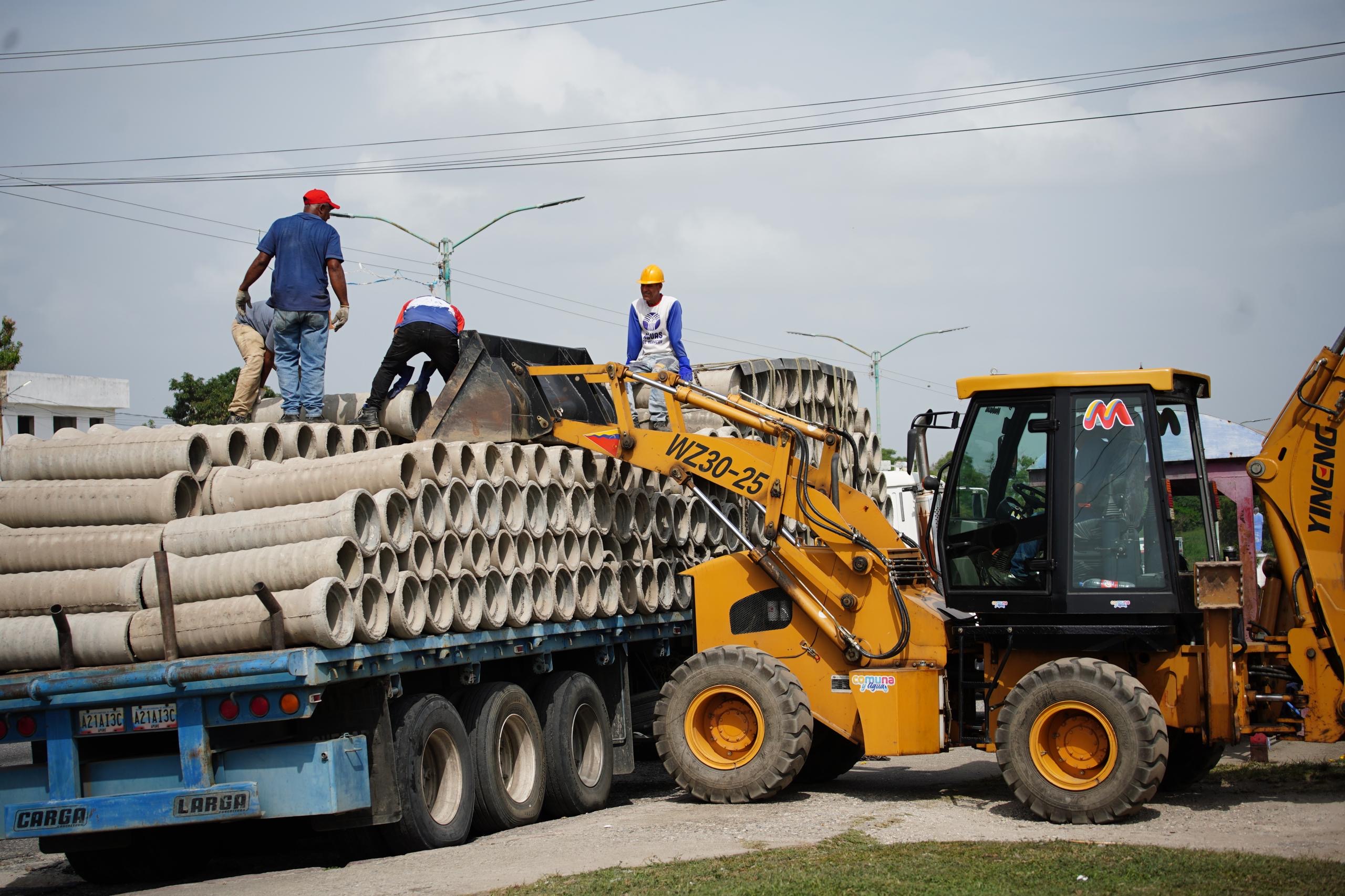 El gobernador Leonardo Intoci cumplió con el compromiso asumido con el pueblo de la Comuna Corazón de Mi Patria Las 8 Luchadoras de Cocorote, con la entrega del primer lote de tuberías para iniciar la construcción de la red de aguas servidas en cinco comunidades que forman parte de la Base de Misiones Villa Zamora (Avenida Intercomunal General José Antonio Páez).
