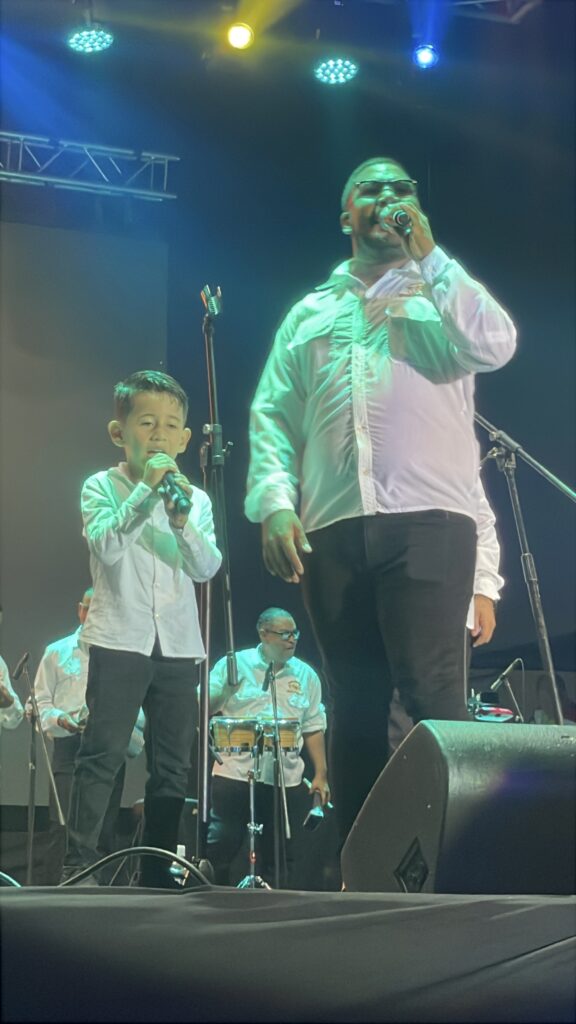 Un momento emocionante de su presentación fue cuando cantó junto a ellos el pequeño niño de nombre Fabricio. También fue un momento especial cuando el gobernador Leonardo Intoci subió para cantar con el grupo el tema Sin Rencor.