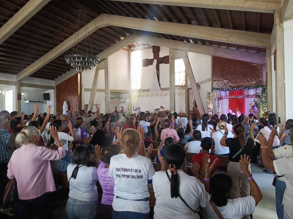 Luego de varios minutos en el municipio Cocorote, los feligreses fueron trasladados a la iglesia Santa Eduvigis, en Independencia, representando un momento marcado por cánticos y el lema de la Campaña Compartir: «Sanar las heridas».
