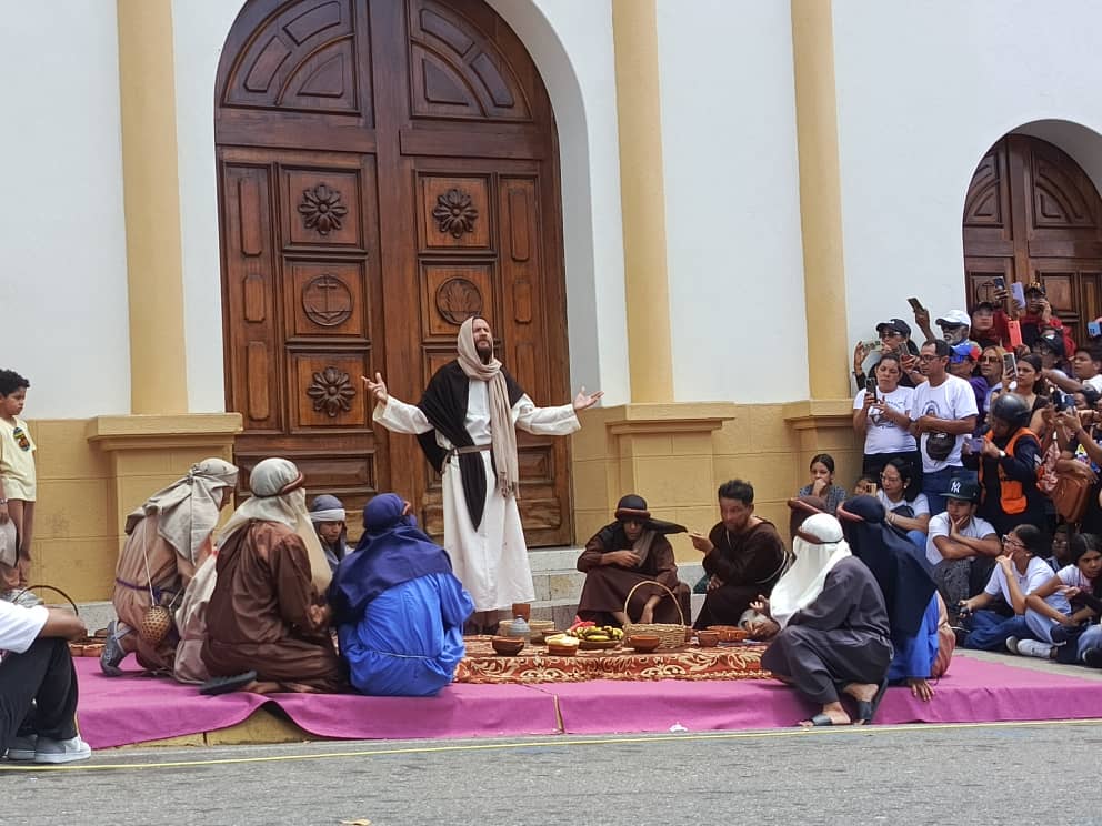 El recorrido culminó en la iglesia El Nazareno cerca de las 2:00 de la tarde. con una emotiva escenificación de la pasión de Cristo a cargo de los jóvenes de la parroquia.